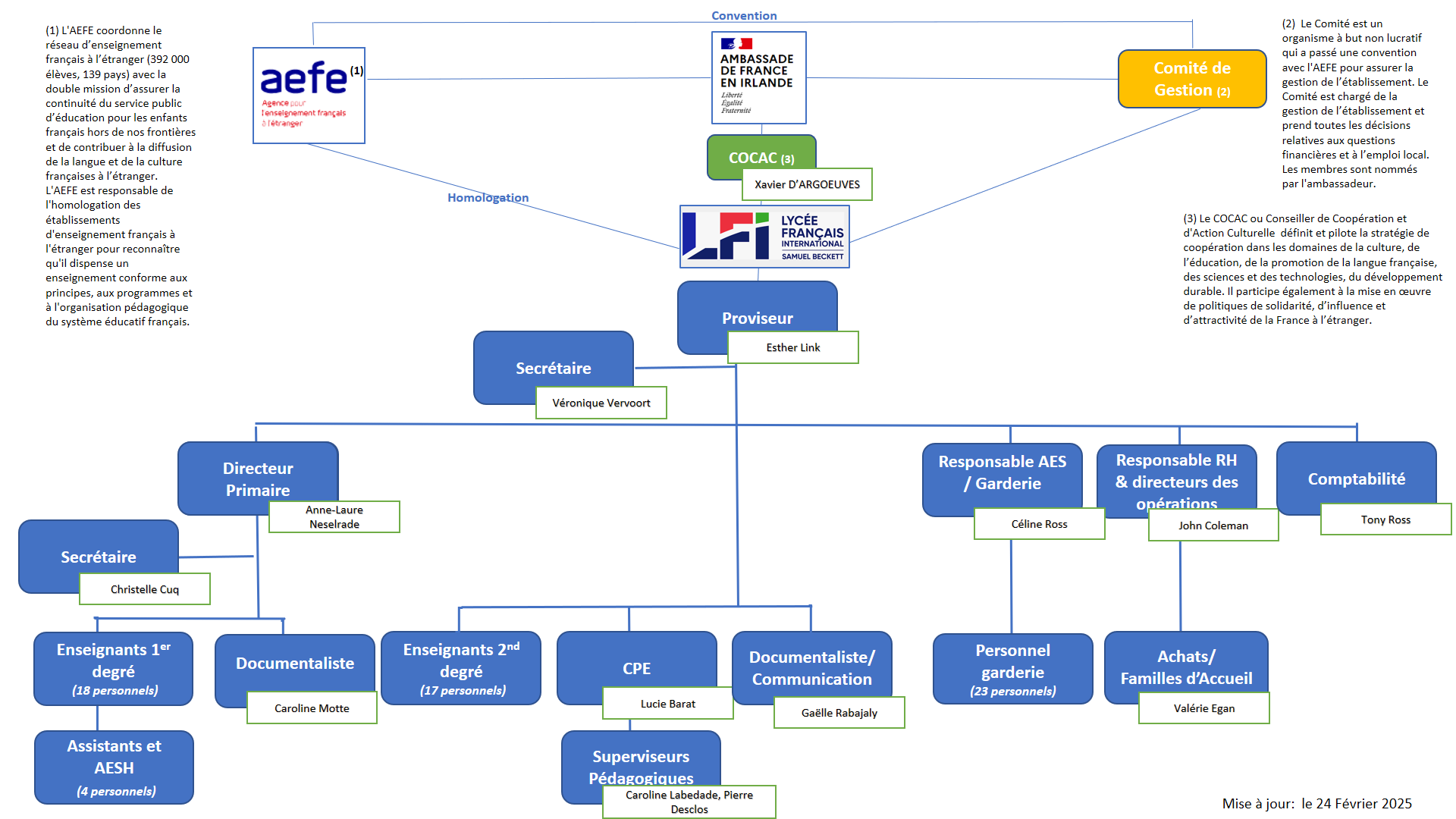 Le Lycée Français International Samuel Beckett est un établissement scolaire qui offre le parcours scolaire Français de la maternelle à la terminale en Irlande depuis plus de 50 ans. Le LFI fait partie du réseau des écoles AEFE (Agence pour l’Enseignement Français à l’Etranger) au même titre que 552 établissements scolaires issus de 138 pays. Il est reconnu à la fois par le ministère de l’Education national français et par le « Department of Education and Skills » Irlandais. Notre école est unique, fière de ses racines françaises et membre actif du système éducatif irlandais.
